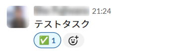 ボットを起動した状態でSlackを開き、適当なメッセージに✅のスタンプを押してみます。