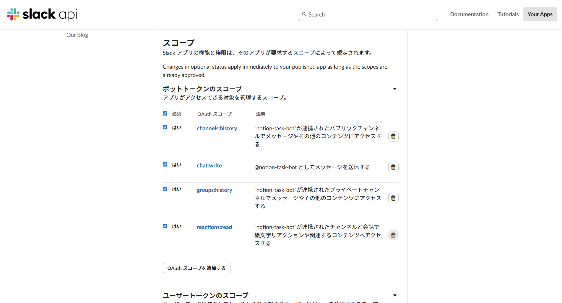 Step 2:Slack Appの設定