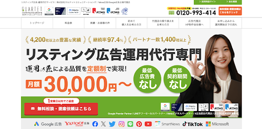 「定額の格安運用代行」を強みとする会社です。リスティング広告の運用代行を「月額1万円から」という、業界の常識を覆す破格の料金設定で提供しています。