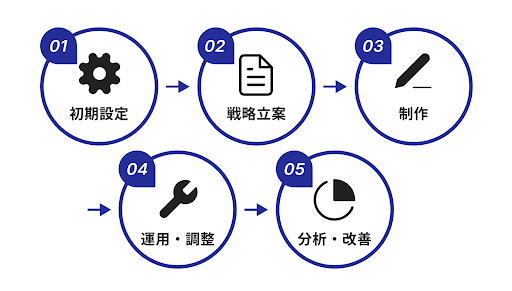 運用代行会社は、単に広告を入稿するだけでなく、成果を出すための一連のプロセスを包括的に支援してくれます。具体的にどのような業務を依頼できるのか、その範囲を理解しておくことで、契約後のミスマッチを防げます。